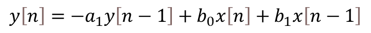 Before we get into the real-time application of digital filters, let’s talk briefly about how they’re implemented. I’ll focus on filters that can be described as the difference equation below: