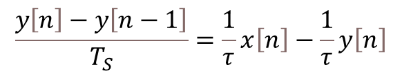 , we can arrive to the difference equation below, which represents the first-order low-pass digital filter, where we used backward difference to approximate