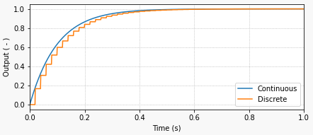 ax.plot(tf, yf, linewidth=1.5, label='Discrete', color='#ff7f0e')