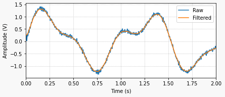 Finally, as I mentioned at the top, you can implement higher order or different types of filters. Take a look at the signal.iirnotch filter, which is a very useful design that removes specific frequencies from the original signal, such as the good old 60 Hz electric grid one.