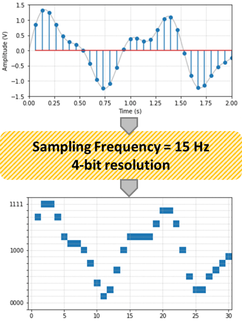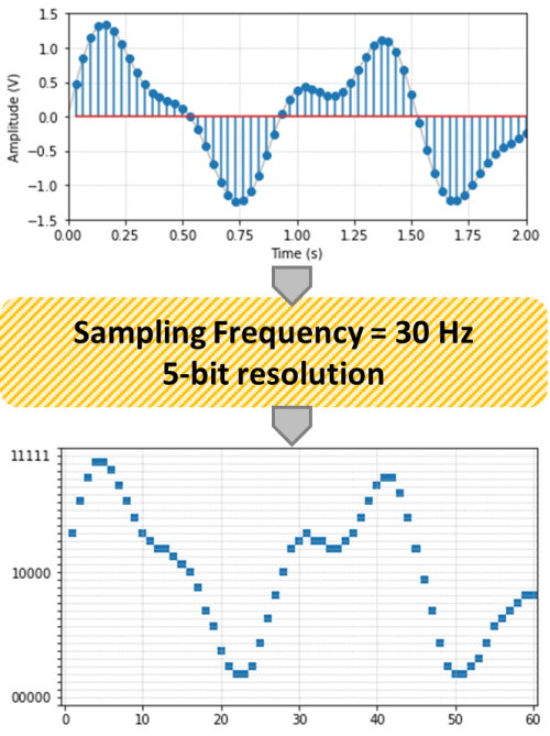 In the example figures above, we could imagine the buffer being used to display the average value of its elements (once the buffer reaches the full state). As time progresses, a new sample is written to the buffer, replacing the oldest sample. Each figure of the full buffer is a snapshot at a given time step of the sampling process. In this case the average values are 6.4, 7.1, and 6.3.