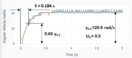 Unfortunately, the PID tuning method presented in the previous post cannot be used to obtain an initial set of controller gains. The first-order approximation used for the speed response doesn’t work for the angular position, since it increases linearly once a steady-state speed is reached. In other words, the DC motor system with position as an output is an integrator of the corresponding system with speed as an output.