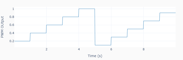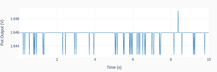 Let’s put the DAC device to the test! The Python code below can be used to generate a random sequence of steps every 0.5 seconds between 0 and 3 V (every 0.5 V). The data is collected using the LabJack U3 streaming feature and plotted in the next figure. Not too bad for our poor man’s DAC.