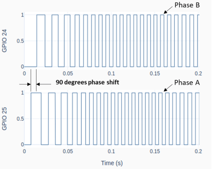 The setup is quite simple: On the Pi side, a GPIO pin used as PWM input to the the low-pass filter and a GND pin. On the U3 side, the RC filter output (which is our DAC output) is connected to the analog input port AIN0, while the GND port is connected to the same GND as the Pi.